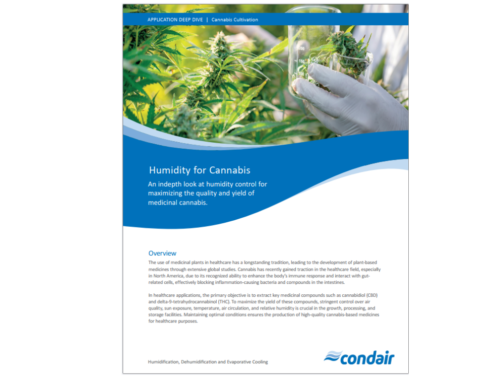 Die Feuchtigkeitsregelungslösungen von Condair sorgen für eine präzise Befeuchtung und Entfeuchtung, um optimale Bedingungen für den Cannabisanbau zu gewährleisten. Stabile Feuchtigkeitswerte unterstützen ein gesundes Pflanzenwachstum, verhindern Schimmel und Krankheiten und steigern die Produktion von Cannabinoiden und Terpenen. Gleichbleibende Umgebungsbedingungen verbessern den Ertrag, die Qualität und die Gesamteffizienz des Anbaus.