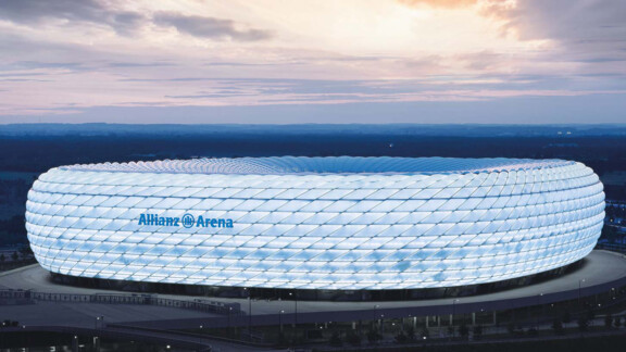 Die Allianz Arena war eines der umstrittensten Bauprojekte, über das sogar eine Volksabstimmung unter den Münchnern stattfand. Seitdem ist sie zum zentralen Wahrzeichen im Norden Münchens und zu einem architektonischen Markenzeichen der Stadt geworden. Besonders auffällig ist die lichtdurchlässige, rautenförmige Außenfassade, die in verschiedenen Farben beleuchtet werden kann.