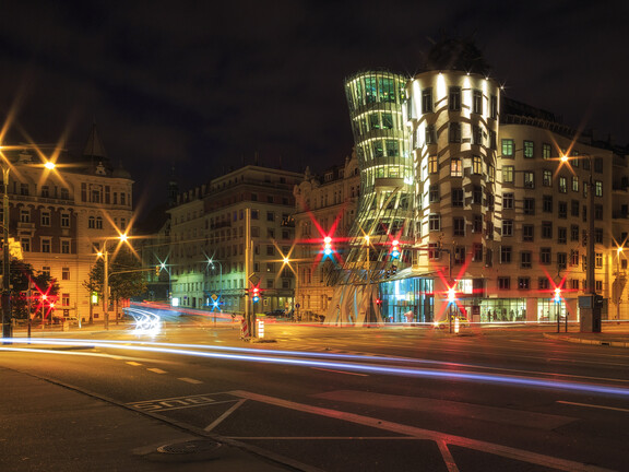 Einst umstritten, ist es heute eines der meistfotografierten modernen Wahrzeichen Prags und beherbergt hochwertige Büros und ein Panorama-Restaurant im obersten Stockwerk mit Blick auf die Prager Burg und die Moldau.