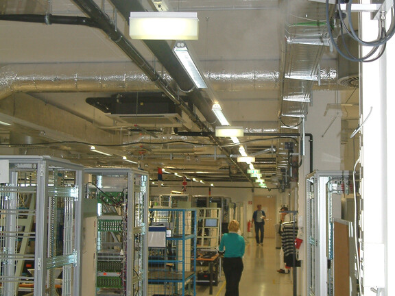Als Frequentis 2006 seine drei Standorte in einem neuen Firmengebäude in Wien zusammenlegte, wurde das Thema „Luftfeuchtigkeit” zu einer dringenden Angelegenheit: „Im ersten Winter haben wir zeitweise eine relative Luftfeuchtigkeit von weniger als 20 % gemessen”, erinnert sich Kurt Feuchtinger, Leiter Facility Management. Die hohe Empfindlichkeit der Komponenten macht einen umfassenden ESD-Schutz erforderlich, um mögliche Schäden oder Langzeitwirkungen auszuschließen. Um eine ausreichend hohe Luftfeuchtigkeit zu gewährleisten, die die Leitfähigkeit der Materialoberflächen so weit erhöht, dass elektrische Ladungen problemlos abgeleitet werden können, arbeitete das Facility-Management-Team intensiv mit dem QS-Beauftragten zusammen, um Lösungen für eine zusätzliche Luftbefeuchtung zu finden.