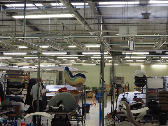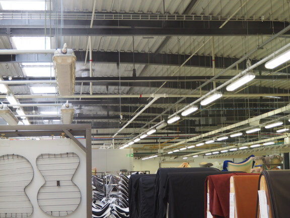 „Unsere Produktionsbedingungen müssen in allen Bereichen optimal sein, um die hohe Qualität des Designs für unsere Kunden zu gewährleisten“, erklärt Maciej Waldmajer, Wartungsleiter bei Fritz Hansen. Um eine optimale Luftführung zu gewährleisten, setzt Fritz Hansen in der Produktion und Endmontage ein Hochdruck-Luftbefeuchtungssystem vom Typ ML Princess ein. Die an der Hallendecke positionierten Luftbefeuchter schützen die formgepressten Furnierstühle vor Verformungen und Rissen. Darüber hinaus sorgt die zusätzliche Luftfeuchtigkeit für einen hochwertigen Lackierprozess.