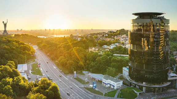 Das IQ Business Center ragt 19 Stockwerke über Kiew hinaus und hat sich schnell zu einem der bekanntesten architektonischen Wahrzeichen der Stadt entwickelt. Der 45.121 m² große Turm beherbergt eine Vielzahl von Premium-Annehmlichkeiten – darunter Konferenzräume, mehrere Restaurants, ein Fitnesscenter, eine Sauna und einen Swimmingpool – sowie einen Hubschrauberlandeplatz auf dem Dach, der die Bedeutung von Zugänglichkeit und modernen Geschäftsanforderungen unterstreicht.