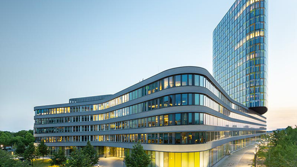 Das vom Architektenteam Sauerbruch/Hutton entworfene Gebäude besteht aus einem 93 Meter hohen Glasturm mit über 1.000 Fenstern in 22 leuchtenden Farben sowie einem sternförmig geschwungenen Sockelbau. Für hygienische Luftfeuchte sorgen Hybrid-Luftbefeuchter Condair DL von Condair.