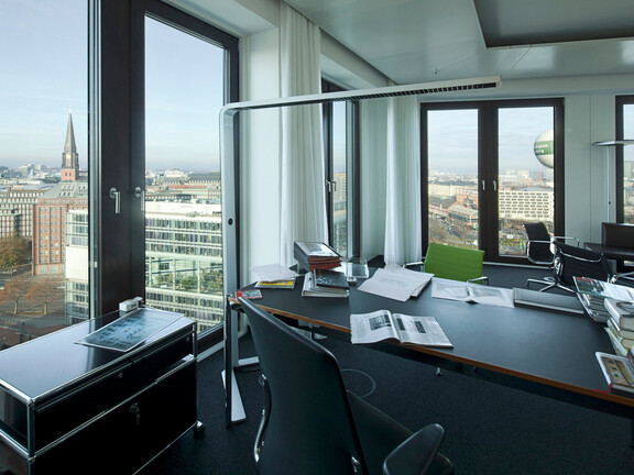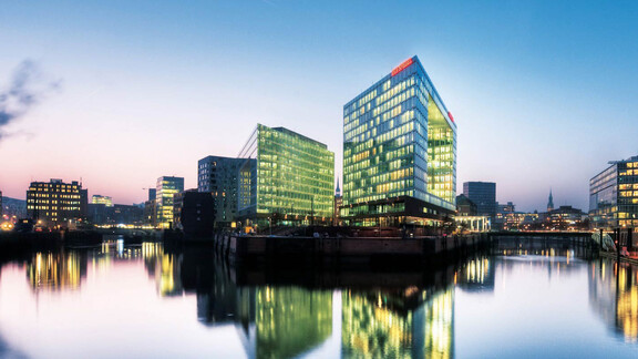 Im östlichen Teil der Hamburger HafenCity, auf der Ericusspitze direkt am Wasser, befindet sich der neue Hauptsitz der SPIEGEL-Mediengruppe. Das 13-stöckige Gebäude aus Stahl, Glas und Beton ist Teil eines Ensembles aus zwei Gebäuden, die nach dem Entwurf des dänischen Architekten Henning Larsen realisiert wurden. Die Form der Glasfassade symbolisiert einen Rahmen um die 1.100 Spiegel-Mitarbeiter, die hier arbeiten.