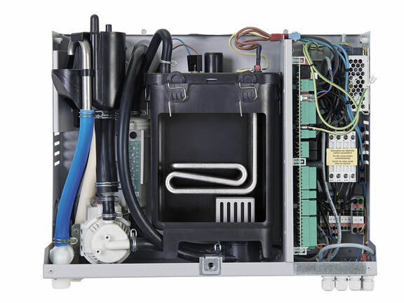 Die Heizelemente des Condair RM werden mit hybriden Relais gesteuert. Das verlängert die Lebensdauer erheblich und erhöht die Betriebssicherheit. Perfekte Anbindung an GLT-Systeme (Modbus).