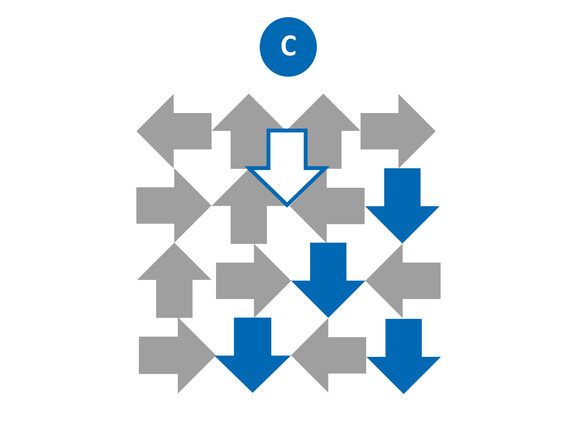 Es sind 16 graue Pfeile, von denen je 4 nach Links, Rechts, Oben und Unten zeigen, sowie ein weisser Pfeil der nach Unten zeigt. Die meisten Pfeile zeigen somit nach unten.