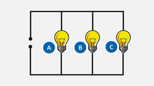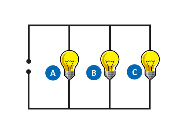 Die Glühlampen B und C werden unverändert weiter leuchten, auch wenn die Glühlampe A plötzlich erlischt.