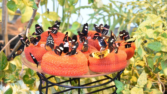 They not only had to maintain the air temperature at a steady 80 degrees F., night and day, they also had to keep the humidity level throughout the entire area at a constant 80%, even as exterior conditions impacted on the humidity in the air being pumped into the building from outside. And the air inside the exhibit had to be recirculated completely every 15 to 20 minutes without creating any discernible breeze. The butterflies only live in their flying state for a few weeks and they require optimum living conditions to thrive and procreate their species. Just like Goldilocks’ Three Bears, they don’t like it to be too cold or too hot, or too moist or too dry, they want it to be “just right!”