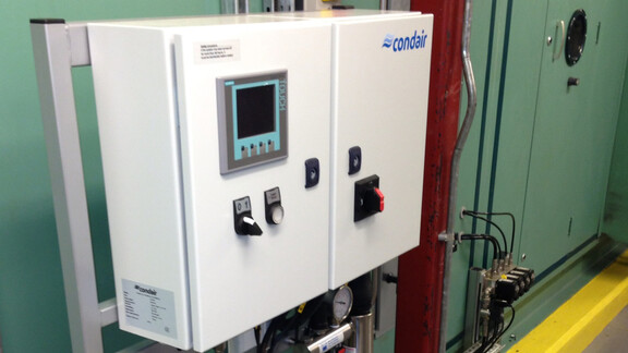 The installed Condair HP humidifiers release up to 425 litres per hour at 70bar from manifolds of high pressure nozzles. The micro-fine sprays are spread uniformly across the AHU, with multi-step arrays providing close control over output. Water is filtered by reverse osmosis and exposed to UV light, ensuring hygienic operation, and the system regularly flushed to prevent the possibility of stagnation. The entire system is made in stainless steel, including the oil-free high pressure water pumps, which further contribute to low maintenance and hygiene.