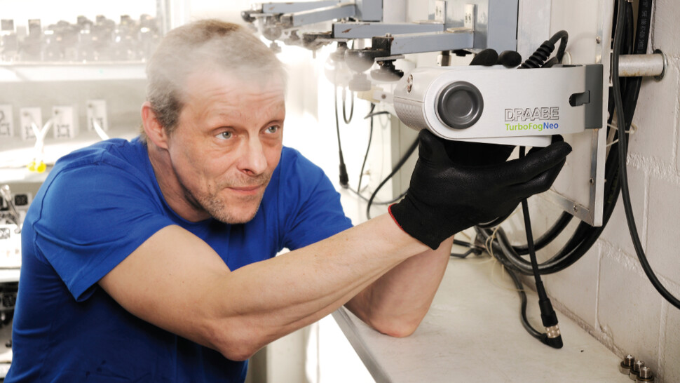 Luftbefeuchter werden häufig unter schwierigen Bedingungen eingesetzt: Stäube, organische Verunreinigungen und besondere Belastungen können die Leistungsfähigkeit und Betriebssicherheit erheblich beeinträchtigen. Aus diesem Grund können Kunden von DRAABE Systemen zusätzlich zum halbjährlichen Austausch der Wasseraufbereitung und Hochdruckpumpe auch alle Luftbefeuchter gegen neuwertige Ersatzgeräte austauschen.