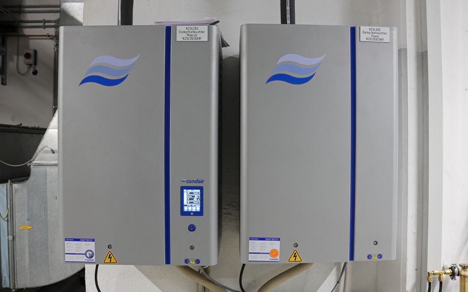 Für Kastor kamen weder ein von einem Dampfnetz versorgter noch ein erdgasbetriebener Dampf-Luftbefeuchter in Frage. Für die RLT-Anlagen blieb somit die Auswahl zwischen der elektrischen Dampf-Luftbefeuchtung und der adiabaten Befeuchtung.