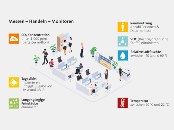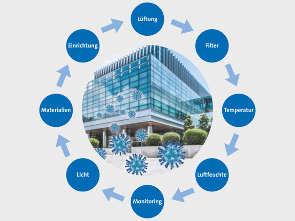 Gesündere Gebäude, die vor Atemwegsinfektionen schützen, sind das Ergebnis vieler Faktoren, die sich auch gegenseitig beeinflussen. Nicht alle Maßnahmen passen zu jedem Gebäude oder sind technisch umsetzbar.