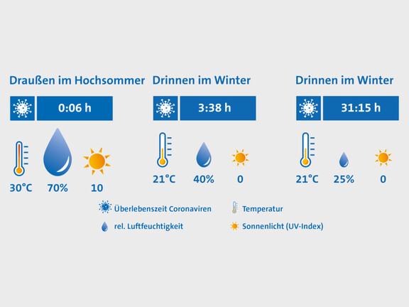 Untersuchungen zeigen, dass die höchste Transportgeschwindigkeit und damit das geringste Ansteckungsrisiko bei 45% relativer Luftfeuchte erreicht wird.