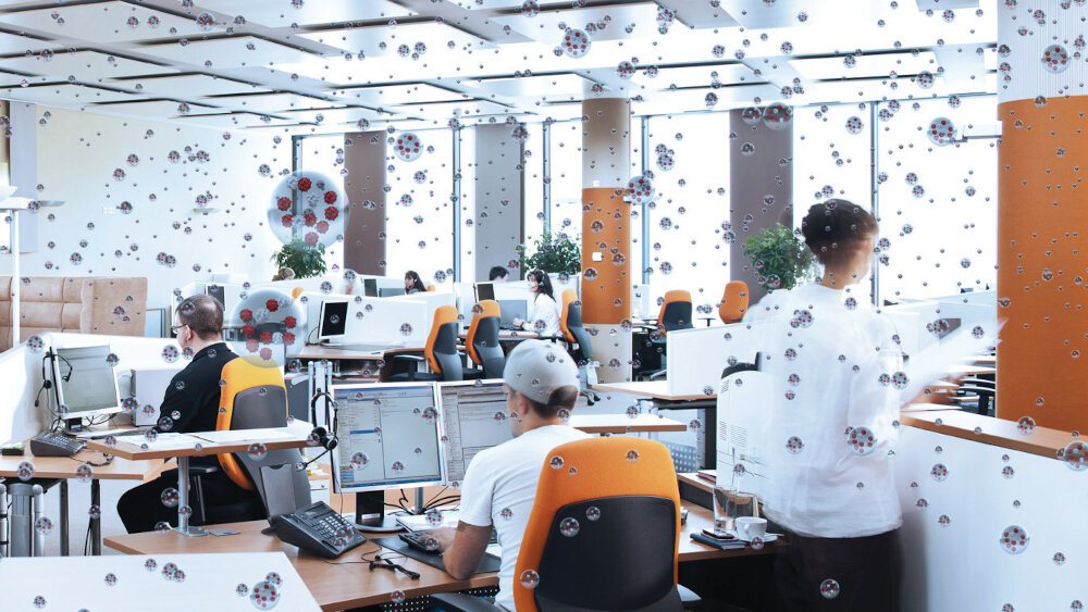 Ob ein Gebäude vor Infektionsübertragungen schützt oder nicht, hängt neben der Gebäudetechnik auch von der Nutzung und Einrichtung ab. In den vergangenen Jahren haben sich in vielen Gebäuden Konzepte durchgesetzt, die Offenheit und Transparenz betonen. Die damit beabsichtigte Förderung der Zusammenarbeit wirkt jedoch negativ auf das Übertragungsrisiko: Große, stark frequentierte Räume führen nachweislich zu einer größeren Vielfalt von Mikroben. Die Reduzierung der Personendichte und ein Mix zwischen offenen und geschlossenen Räumen kann die Verbreitung von Krankheitserregern eindämmen.